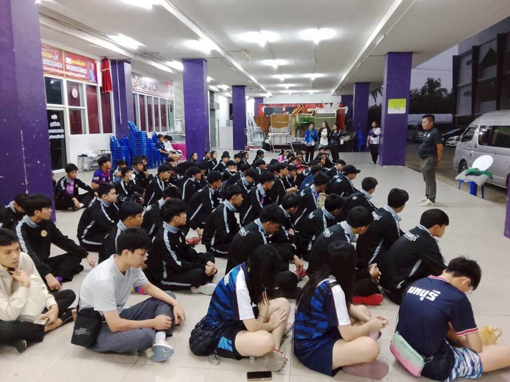 คณะผู้บริหาร และคณะครู พบปะ ให้โอวาทและให้กำลังใจ กับคณะครู ตัวแทนนักกีฬา
