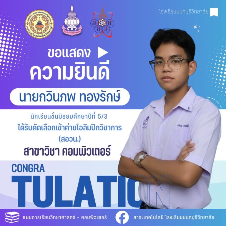 ข่าวประชาสัมพันธ์โรงเรียน 🎉 สรุปผลการแข่งขันทักษะวิชาการ และงานมหกรรมการจัดการศึกษาท้องถิ่น (ระดับประเทศ) ครั้งที่ 14 ประจำปี 2568 ณ เทศบาลนครสกลนคร จังหวัดสกลนคร 🎉 โรงเรียนนนทบุรีวิทยาลัย สังกัดองค์การบริหารส่วนจังหวัดนนทบุรี ส่งนักเรียนเข้าแข่งขันทั้งสิ้น 21 รายการSeptember 29, 2025September 29, 2025Sudarat Boonchoeiอ่านเพิ่มเติม→